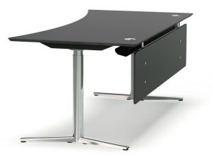Complete Offices DL9 hæve/sænkestel, består af egenproduceret alu lakeret fødder og søjler fra danske Linak. Kombinationen sikrer et solidt kvalitetsstel, som er stabilt og lydsvagt. Stellet er 3 leds med en vandring fra 62 cm til 128 cm og sikrer derved at bordet giver den rette komfort til både lave og høje personer. Toprammen er ligeledes justerbar. Stellet fås i grafit eller alu lakeret og også på hjul, hvis dette ønskes.